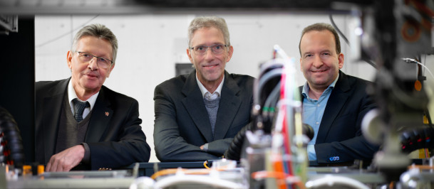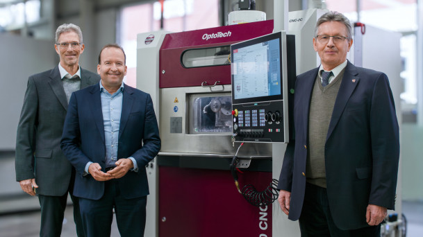 OptoTech feiert 40-jähriges Jubiläum: (v.l.n.r.) Firmengründer Roland Mandler mit den beiden Geschäftsführern Jens Schäfer und Dr. Stefan Seifried. (Foto: Ralf A. Niggemann)
