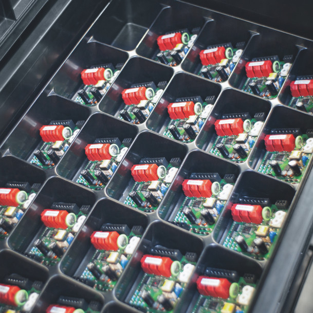 Auf die Frage, ob die Digitalisierung die Produktwelt vorantreibt oder umgekehrt, gibt es eigentlich keine eindeutige Antwort – höchstens eine Gegenfrage: Nämlich die nach der Henne und dem Ei. Für Christian Stolz und Thomas Hilbig steht zumindest fest, dass sowohl die Entwicklungen in der Produktwelt als auch die zunehmende Digitalisierung die Art der Arbeit kontinuierlich verändern. In der Produktion hat Janitza erst kürzlich eine weitere hochmoderne SMD-Bestückungsanlage in Betrieb genommen, um die technologischen Voraussetzungen für die Zukunft zu schaffen. Um die elektromagnetische Verträglichkeit von Geräten oder Anlagen sicherzustellen, leistet sich Janitza sogar eine hauseigene EMV-Anlage.