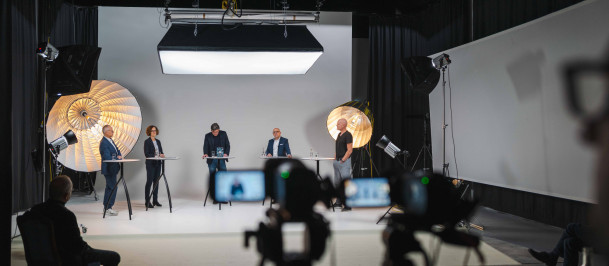 Ausgeleuchtet und aufgezeichnet: Gesprächsrunde im Studio im Leitz-Park. (Fotos: Michael Agel)