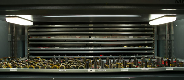 Als bräuchte es dafür noch einen Beleg, führt uns Michael Weller in einen abgeschirmten Raum, den man in diesem Zusammenhang wohl als das Herz der Fertigung bezeichnen könnte: Hier werden alle zur Fertigung notwendigen Lehren, Vorrichtungen und Werkzeuge systematisch archiviert, eingelagert und bei Bedarf wiederverwendet. Die Auswahl der feinwerktechnischen Werkzeuge ist beeindruckend, viele davon sind von Weller selbst konstruiert und gebaut. Gehütet wird das Archiv von einer kompetenten Mitarbeiterin, die darauf achtet, dass alles seine Ordnung hat, und in jedem Fall weiß, wo welche Werkzeuge aktuell im Einsatz sind. Die ungenutzten Werkzeuge werden von den jungen Auszubildenden ausgeliehen, um sich in der Lehrwerkstatt weiterzubilden. So wird die feinmechanische Kompetenz, die einst aus dem Geist der Tradition großer Unternehmen wie Leitz, Hensoldt und Zeiss entstand, bei Weller weitergetragen.