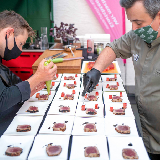 Am Mittwoch, den 16. September hatte das Wetzlar Network zu einem Get-Together bei beim Einrichtungsspezialisten für Küche Bad und Objekt – pfeiffer in Asslar geladen. Natürlich unter Einhaltung strengster Hygieneauflagen und Sicherheitsabstände. Starkoch Nils Jorra bereitete auf dem legendären Keramikgrill Big Green Egg einige Köstlichkeiten zu. Und es wurde auch gebührend auf das 10-jährige Jubiläum des Wetzlar Network angestoßen. Man könne „stolz sein auf das, was sich hier getan hat“, betonte Dr. Carsten Ott von Hessen Trade & Invest: „Die Zusammenarbeit der Unternehmen aus den Bereichen Optik, Elektronik und Mechanik ist ein Schlüssel zum Erfolg. Und die positive Entwicklung ist auch das Ergebnis der Zusammenarbeit im Wetzlar Network.“