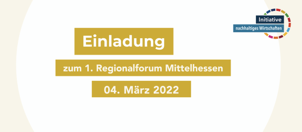 Am 4. März 2022 lädt die Initiative nachhaltiges Wirtschaften zum ersten Regionalforum Mittelhessen. Ein zentrales Ziel der Online-Veranstaltung ist der Austausch zwischen den Unternehmen vor Ort, um das Land Hessen als Innovationsstandort für nachhaltiges Wirtschaften zu etablieren.
