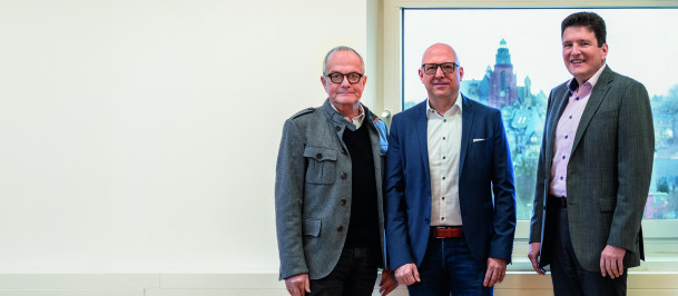 We meet the three gentlemen on the third floor of Wetzlar's New Town Hall that gives a great view over the city to the cathedral. At a linear distance of about five hundred meters, cranes surround the newly constructed building in the cathedral courtyards, the so-called Domhöfe, giving the impression: Things are moving.
