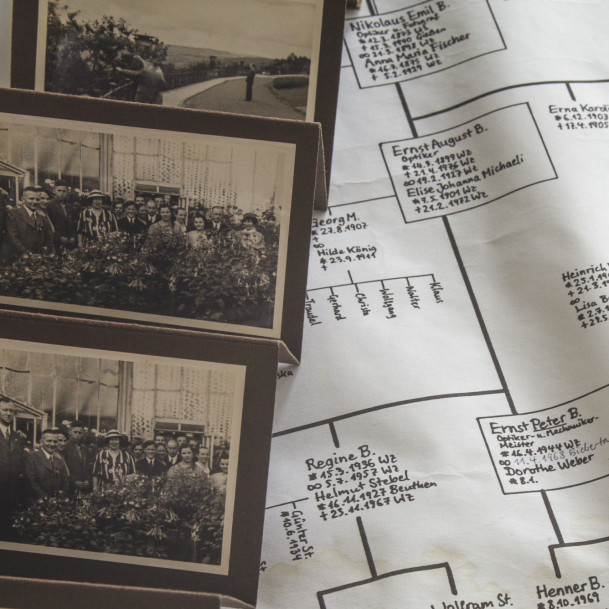 This is quite true – and Henner Befort shows a good deal of appreciation and gratefulness when speaking about the company that has born the name of his family from the very beginning. It all started in 1922, the founding year of the optical workshop “Ernst Befort Optische Werkstätte”. Since 1928, the company has been located in Braunfelser Straße. They manufactured microscope mirrors, graticules, and scale divisions on optical substrates. Precision optics made by Befort were in high demand, their workforce was growing. From a display cabinet, Henner Befort takes a fanfold with photographs of a staff outing on July 11th, 1936. The following years of the war put more than one worry line on the forehead of Ernst Befort. After the Second World War, he was hired by the Americans to photograph so-called “displaced persons” who were released from war imprisonment or concentration camps. Also commissioned by the US Army, he produced dazzler mirrors for returning allied soldiers which, curiously enough, are evocative of modern iPhones.