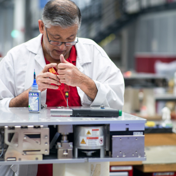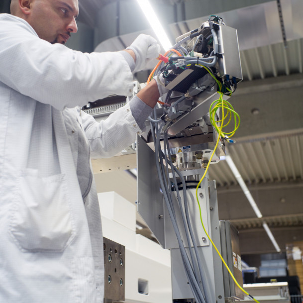 Thomas Breser gives us a tour through the hallowed halls where employees assemble and convert both heavy machinery and the most delicate mechanics. Massive granite slabs provide stable conditions. Active vibration isolating modules do their job, data is read out and analyzed. At the heart of it all is the vast cleanroom area which consists of several rooms in fact. Judging by the degree of automation, it is astonishing just how much is still done by hand in such a high-tech company. “This is pretty much the secret of our success,” replies Breser. “The production of our highly specialized systems does not require automated processes but a combination of passion, intelligence, and experience. No other company is able to match our know-how in terms of structural dynamics.”